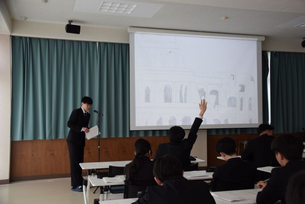 2025年4月22日 / 最終更新日時 : 2025年4月24日 Tsurukou 建築システム科 美しいと思う建築デッサン発表会 1年生建築システム科の発表会が行われました。美しいと思う建築デッサンが課題として出ており、入学後に仕上げて4/22の発表会に臨みました。細部まで丁寧に書き込まれている力作が多くありました。