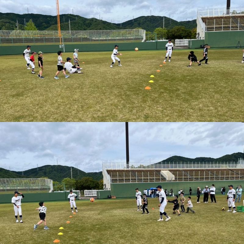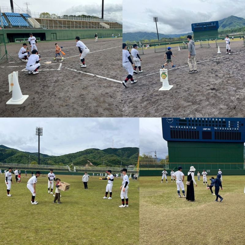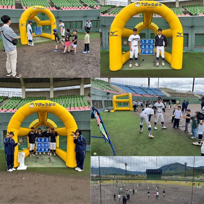 内容を両校の野球部員が考え、当日は児童が安全に楽しく活動できるようにサポートしました。いたるところで笑顔と歓声があふれるた会場には50名の児童とその保護者の方で100名以上の方に来場いただきました。参加いただいた皆様、ありがとうございました。