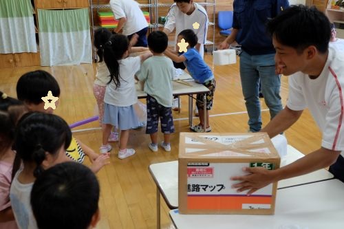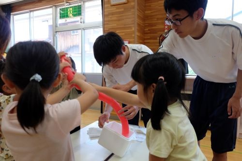 空気砲は園児も打つことができたので特に盛り上がり喜んでもらえました。
