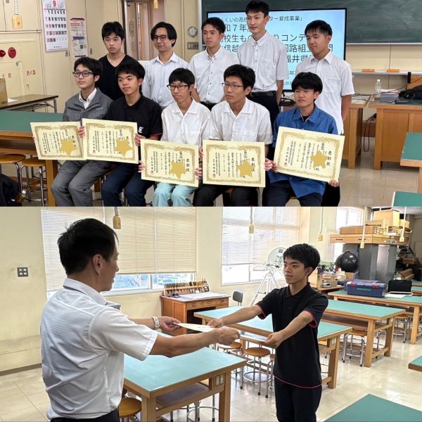 2025年9月15日 / 最終更新日時 : 2025年9月18日 Tsurukou 電気科 北信越ものづくりコンテスト【電子回路組立部門】 電子回路組立部門に出場した敦工生が、なんと第3位入賞! 3年生8名、2年生1名、そして1年生はたった一人——田中さんが堂々の活躍です。 強豪・砺波工業高校が1位・2位を占める中での3位は、本当にすごいことです!